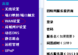 8、登录路由器管理页面,找到并点击左边功能菜单中的WAN设置: