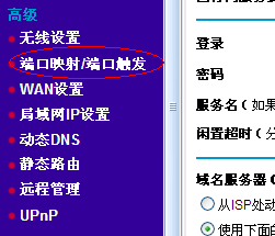 1、登录路由器管理界面,找到并点击左边功能菜单中的端口映射/端口触发: